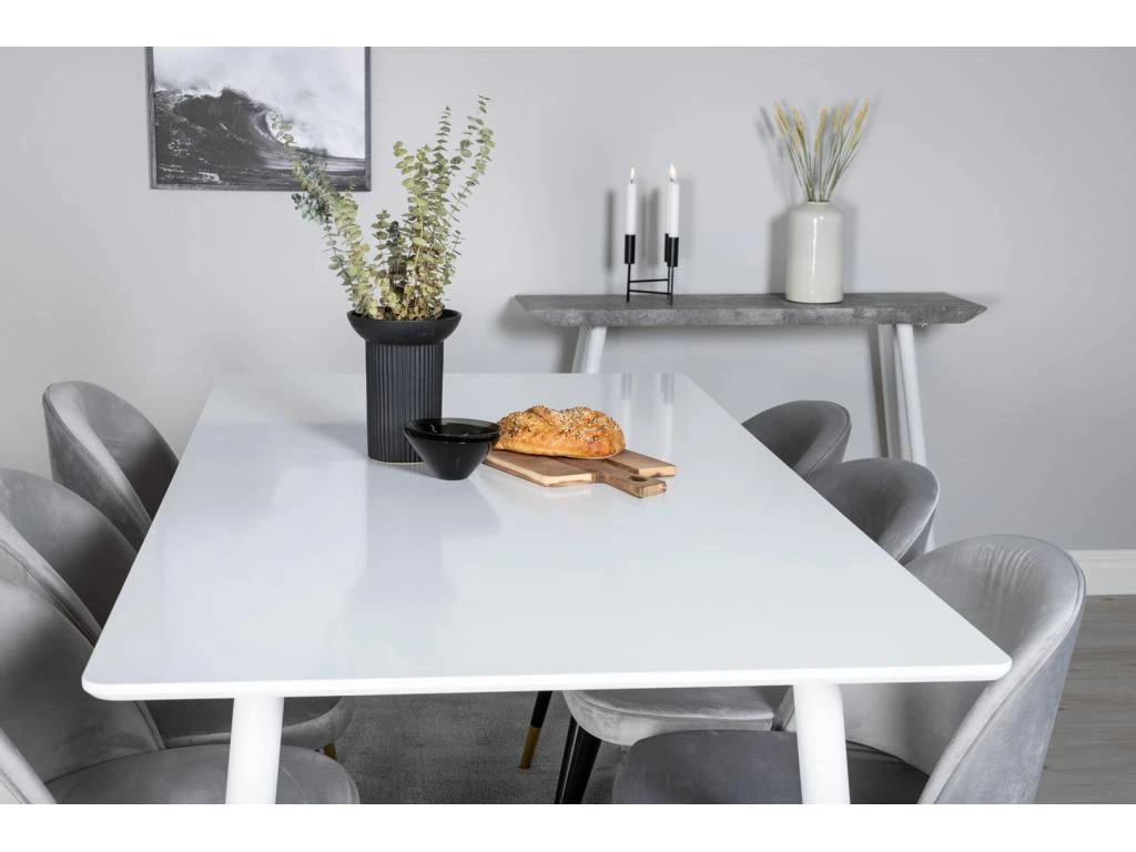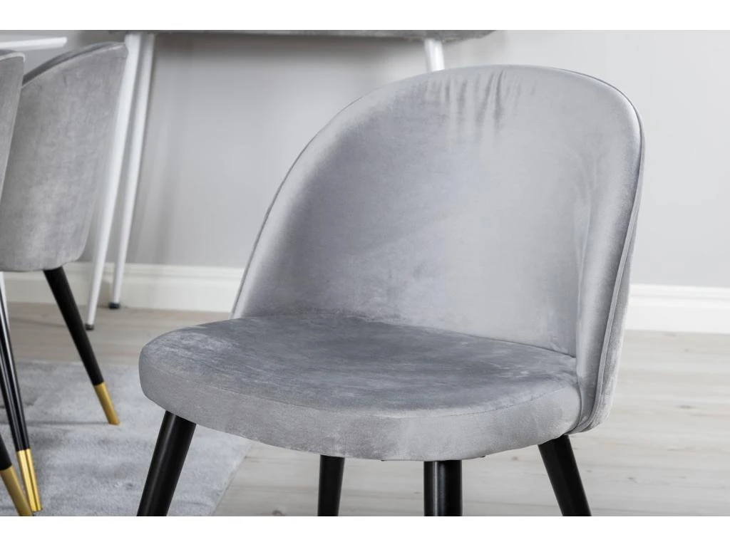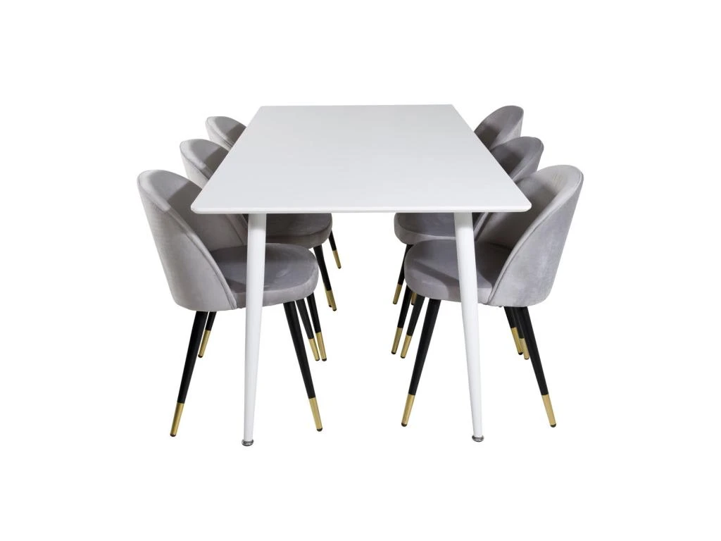 BiancaROWW Ensemble Table, Table ChĂȘne PlaquĂ© Blanc Washed Et 4 Emma Chaises Velours Gris,noir.