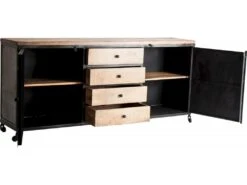 Buffet Salon Et Cuisine, 200x87x35cm, 4 Portes, Cheminée électrique, Design Industriel, Ciment