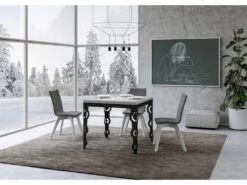 Table Extensible Portefeuille 90×90/180 Cm Karamay Libra Frêne Blanc Cadre Anthracite