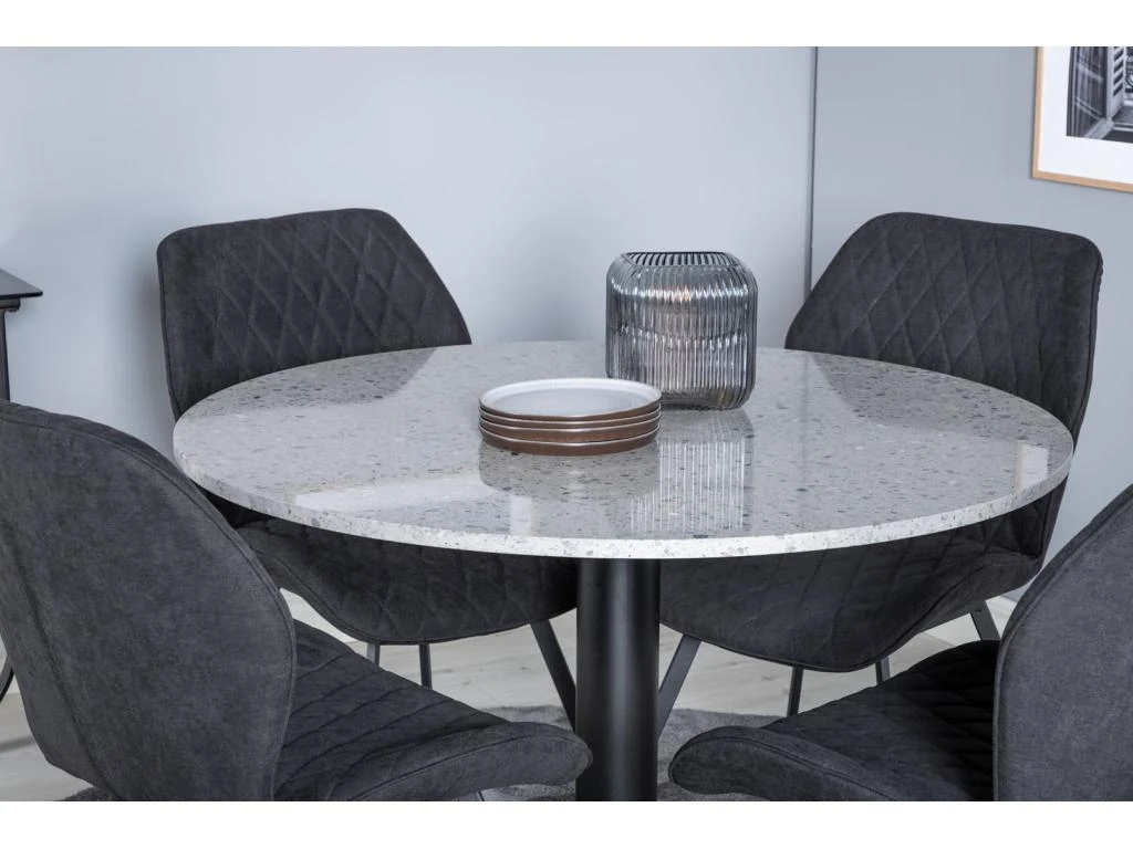 EstelleØ106BLBR Ensemble Table, Table Noir, Marbre Et 4 Velvet Deluxe Chaises Grisclair, Noir.