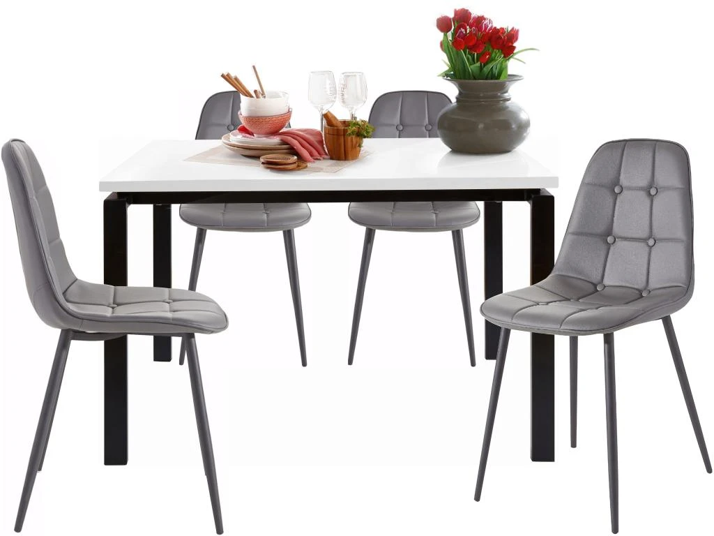 Ensemble CANNES Table + 4 Chaises Noir. Idéal Pour Cuisine Ou Salle à Manger.