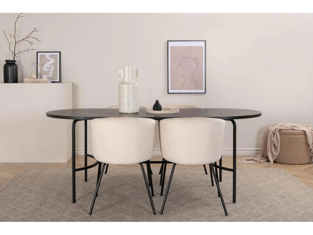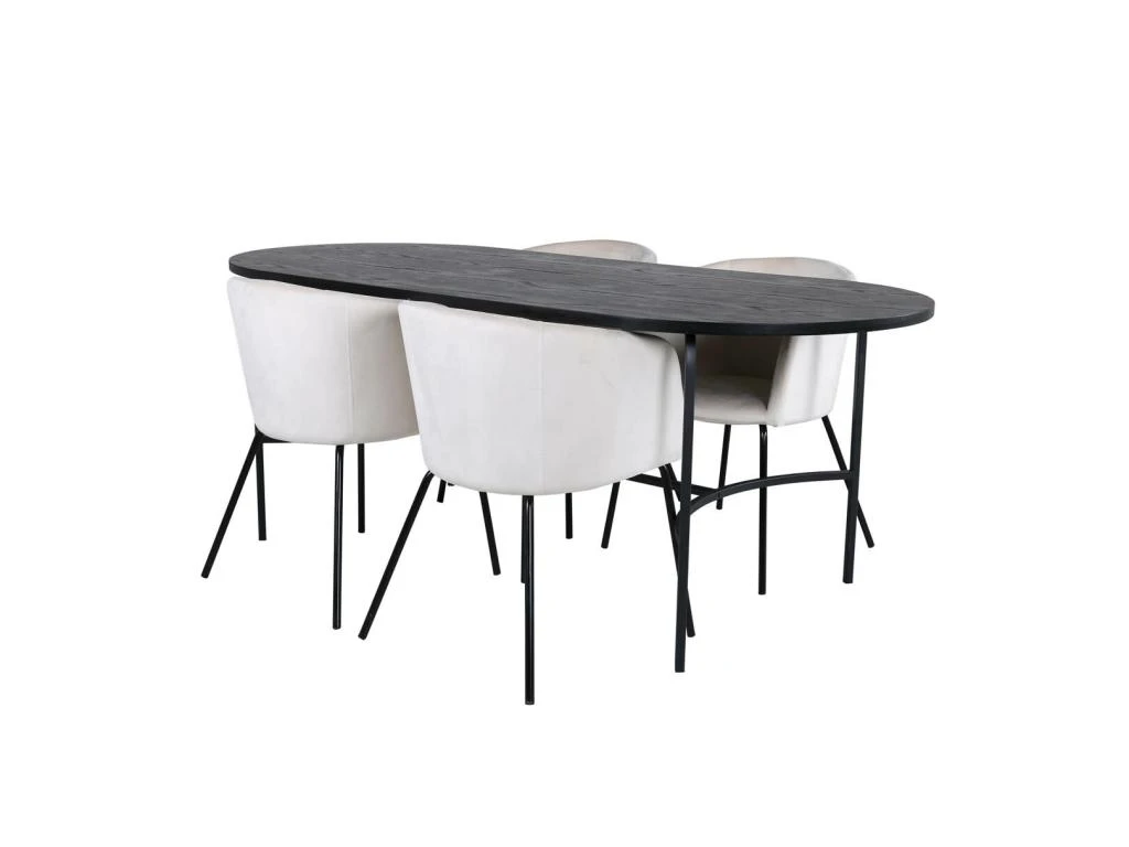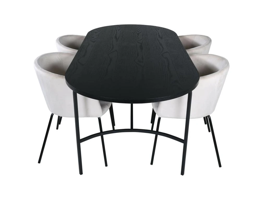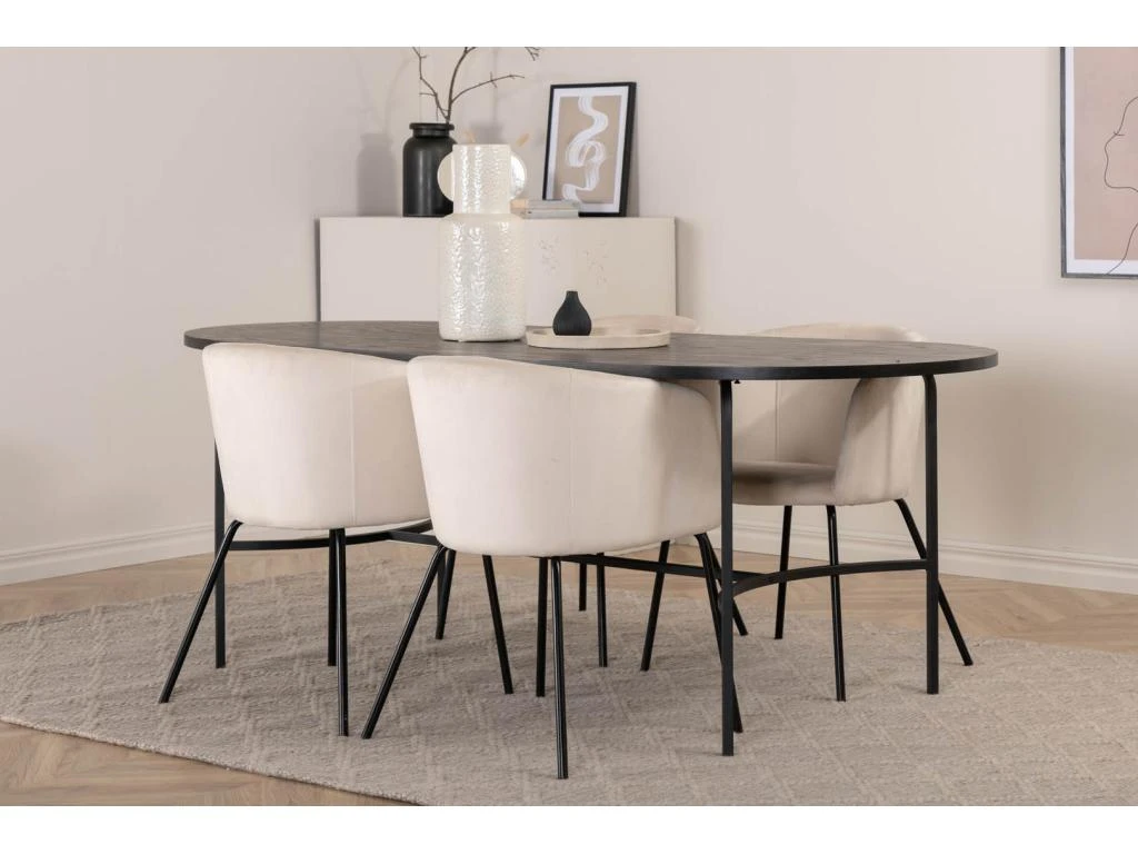 DippØ115BLBL Ensemble Table, Table Noir Et 4 Berit Chaises Velours Noir.