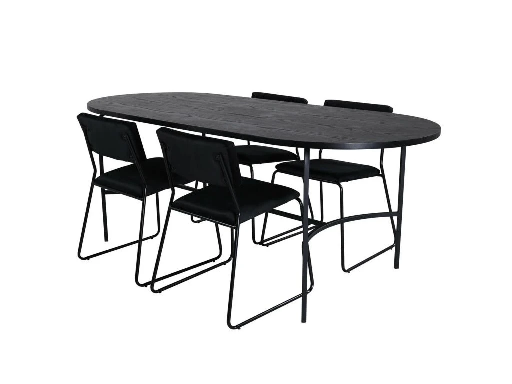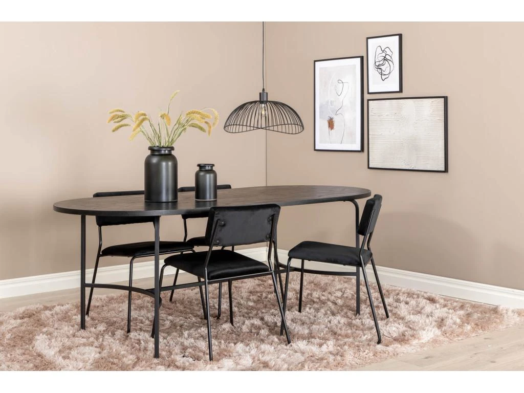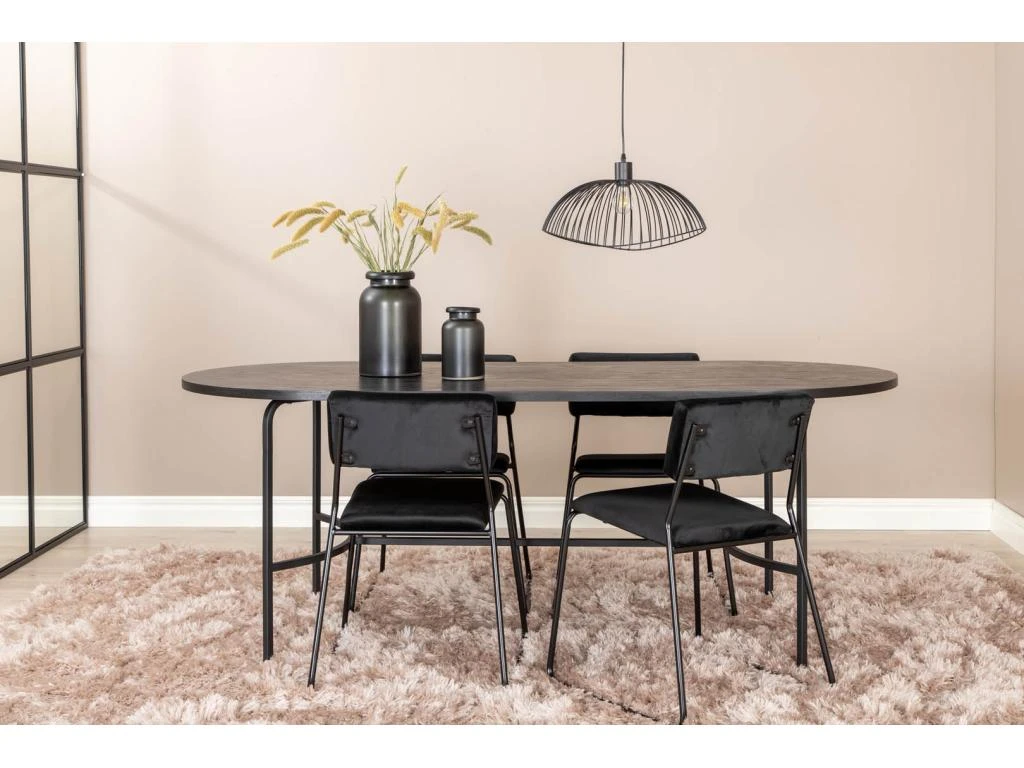 PiazzaBLBL Ensemble Table, Table Noir Et 6 Pippi Chaises Velours Noir.