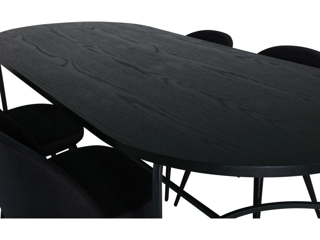 MarinaBLBL Ensemble Table, Table Noir Et 6 Polar Chaises Velours Gris.