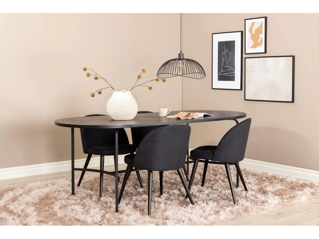 BiancaROWW Ensemble Table, Table Chêne Plaqué Blanc Washed Et 4 Emma Chaises Velours Gris,noir.