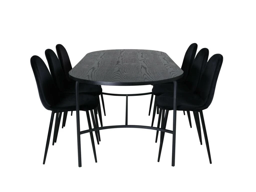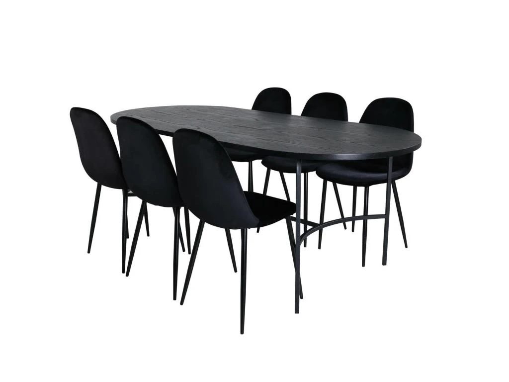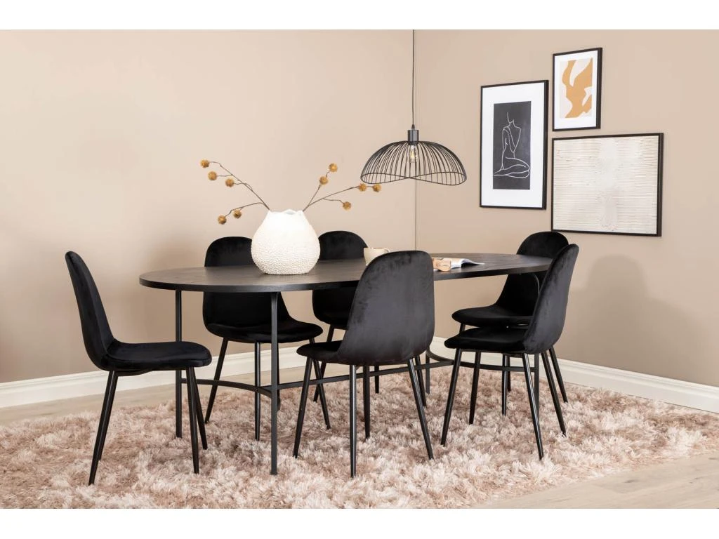 DippØ115BLBL Ensemble Table, Table Noir Et 4 Berit Chaises Velours Noir.
