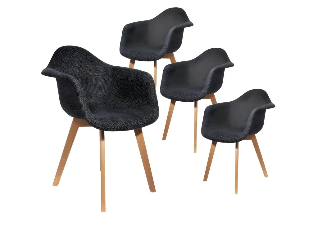 STYGN – Lot de 4 Fauteuils avec Maille Noire Fils Argentés Stygn.
