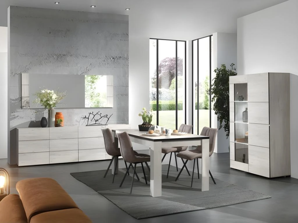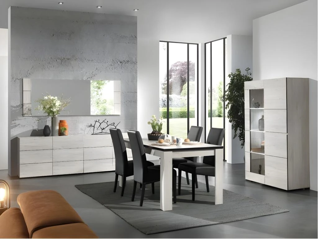 Table de salle à manger de longueur 160 cm collection Elba. Cette table est assortie aux autres meubles de la collection Elba. Convient idéalement pour 6 convives. Fabrication européenne. A monter soi même. Dimensions : L160 x l90 x H78 cm. Poids : 36 kg. Matière : Panneaux de particules épaisseur 16mm. Coloris : chêne blanchi.