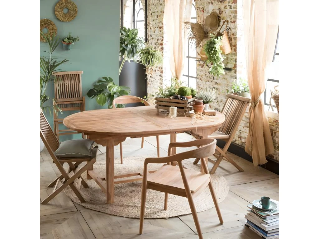 Cette table de jardin vous permet grâce à ses dimensions généreuses de réunir toute votre famille confortablement. Elle propose un design simple et épuré qui ravira les amateurs de simplicité. C’est le basique parfait pour accompagner votre terrasse tout l’été. Elle sera parfaitement à sa place dans votre extérieur grâce à son bois de teck traité pour un usage extérieur, cependant, l’hiver il est préférable de la mettre au chaud ou de la couvrir. Elle dispose d’une allonge de 60 cm qui vous permettra de passer facilement de 180 à 240 cm. C’est une allonge portefeuille, elle n’est donc pas à stocker, elle se place à l’intérieur de la table quand elle n’est pas utilisée. Pour monter cette table, il vous suffira d’assembler le plateau au piétement grâce à l’outillage fourni.