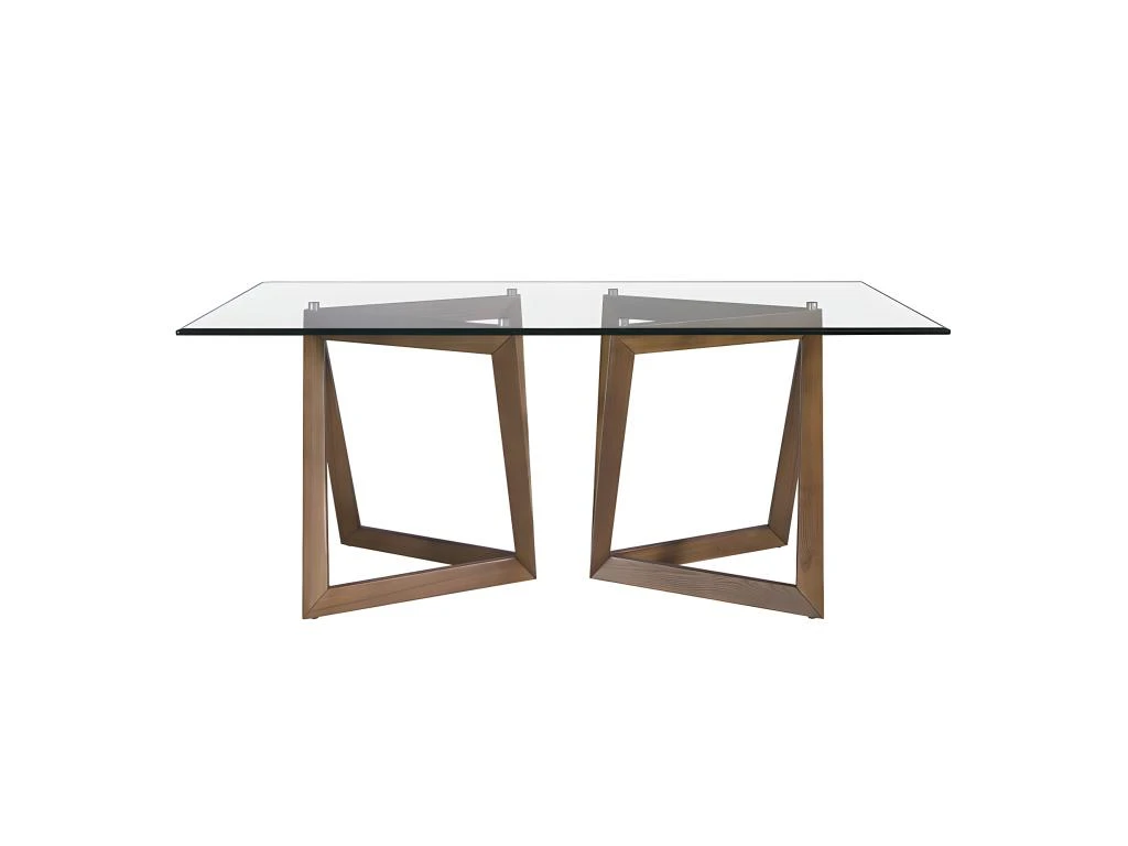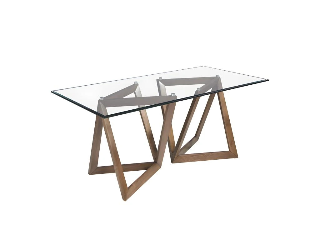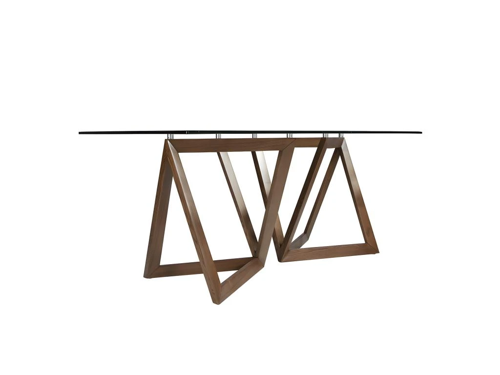 Table de salle à manger de style moderne avec plan fixe rectangulaire en verre trempé de 12mm avec bords biseautés. Ses deux pieds rectangulaires en frêne massif couleur noyer apportent chaleur et avant-garde à votre pièce. En outre, grâce à cette structure originale en bois de noyer, la sensation d’espace et de légèreté sera beaucoup plus grande. Chaque détail est pensé pour vous offrir le meilleur confort, ainsi qu’une pièce design pour votre salle à manger