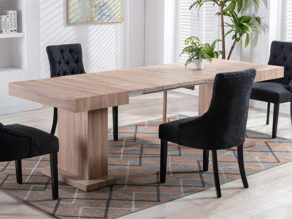 La table à manger MIROSLAV est dotée d’un système de rallonges pouvant passer de 4 à 10 personnes. Cette table en MDF s’adaptera facilement à tous les intérieurs.