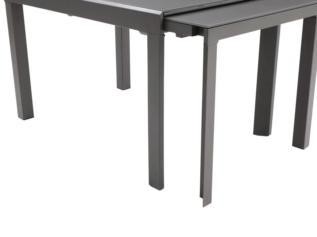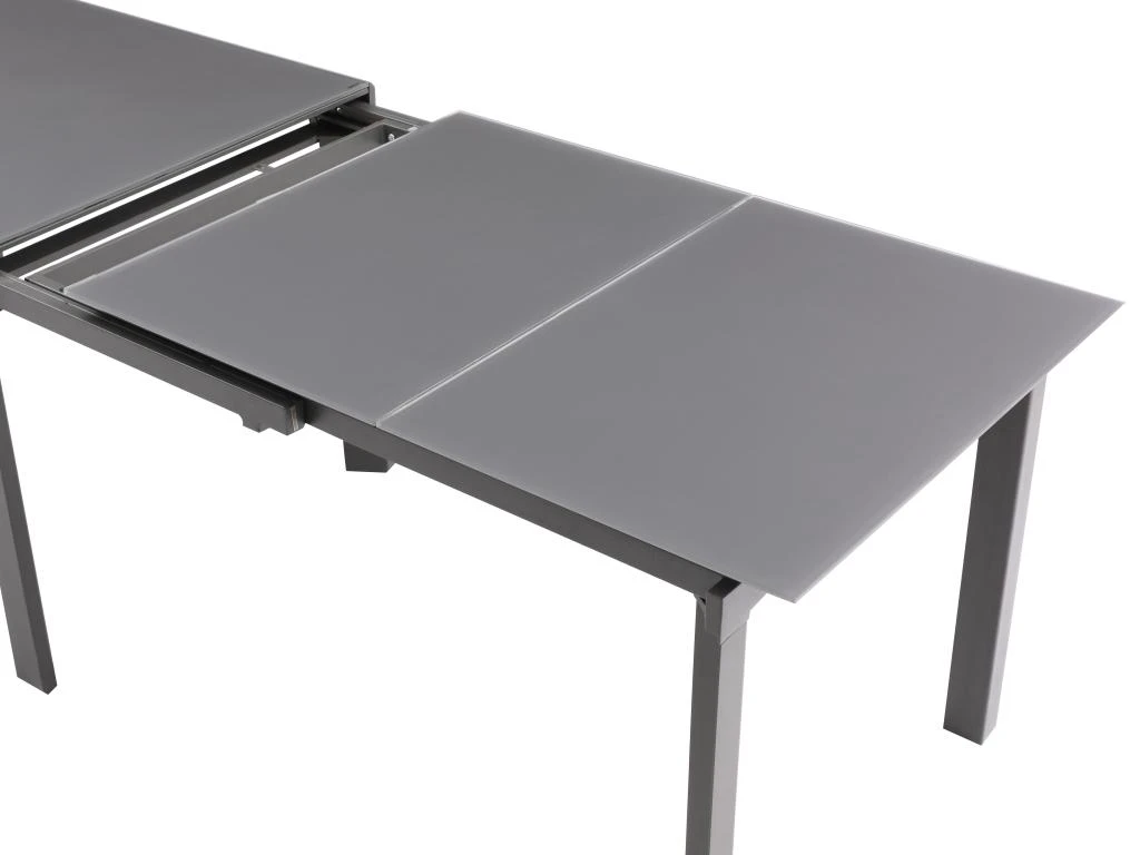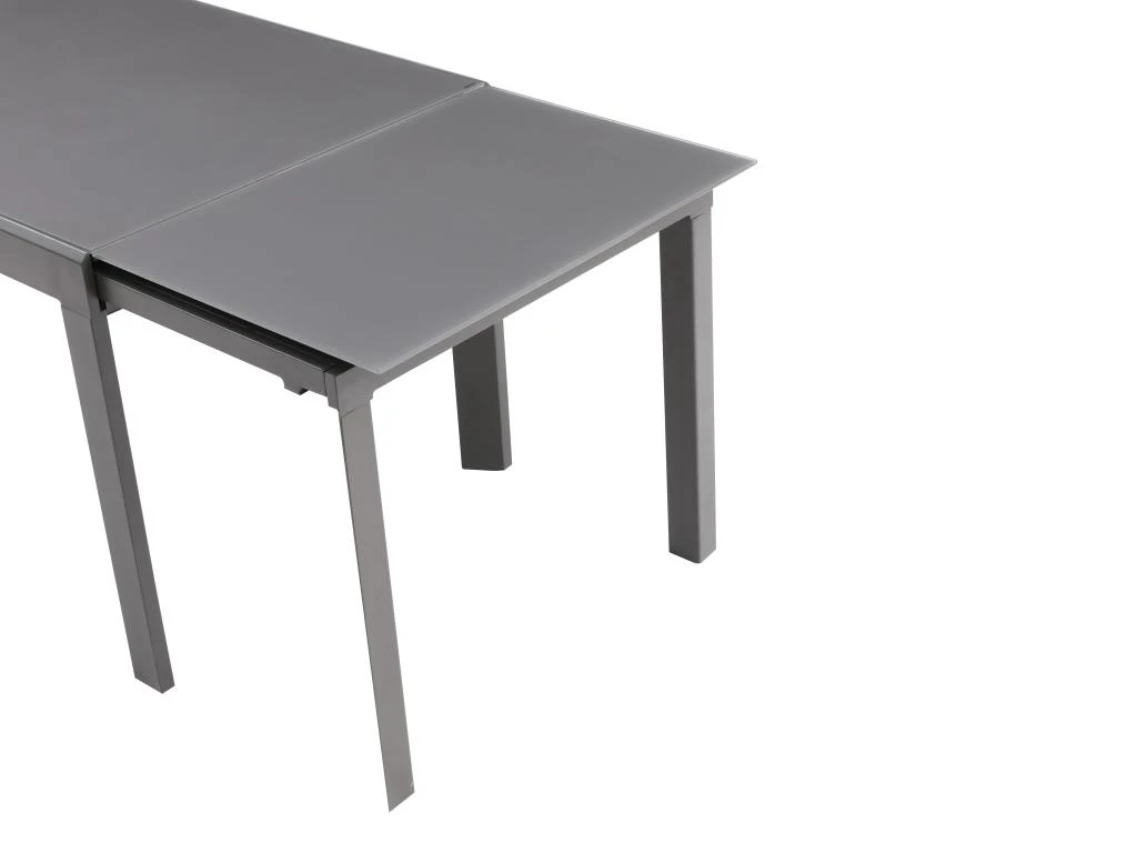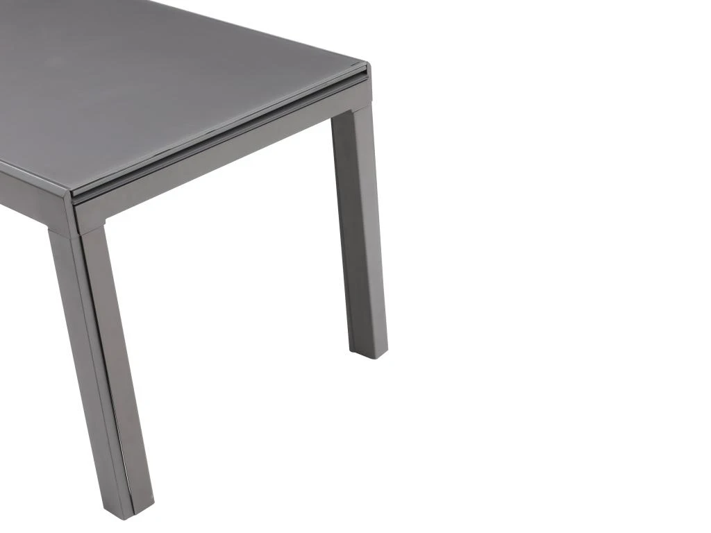 Avec la table à manger CHELDY, il vous suffira de tirer les rallonges intégrées pour accueillir plus de monde à votre table. Ingénieuse, elle donnera aussi du style à votre séjour avec son joli plateau en verre trempé.