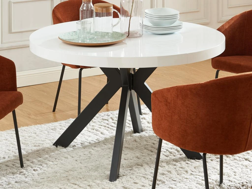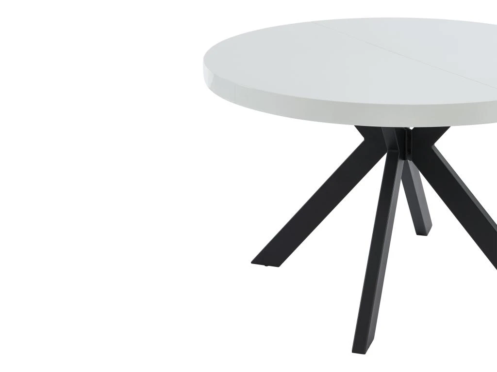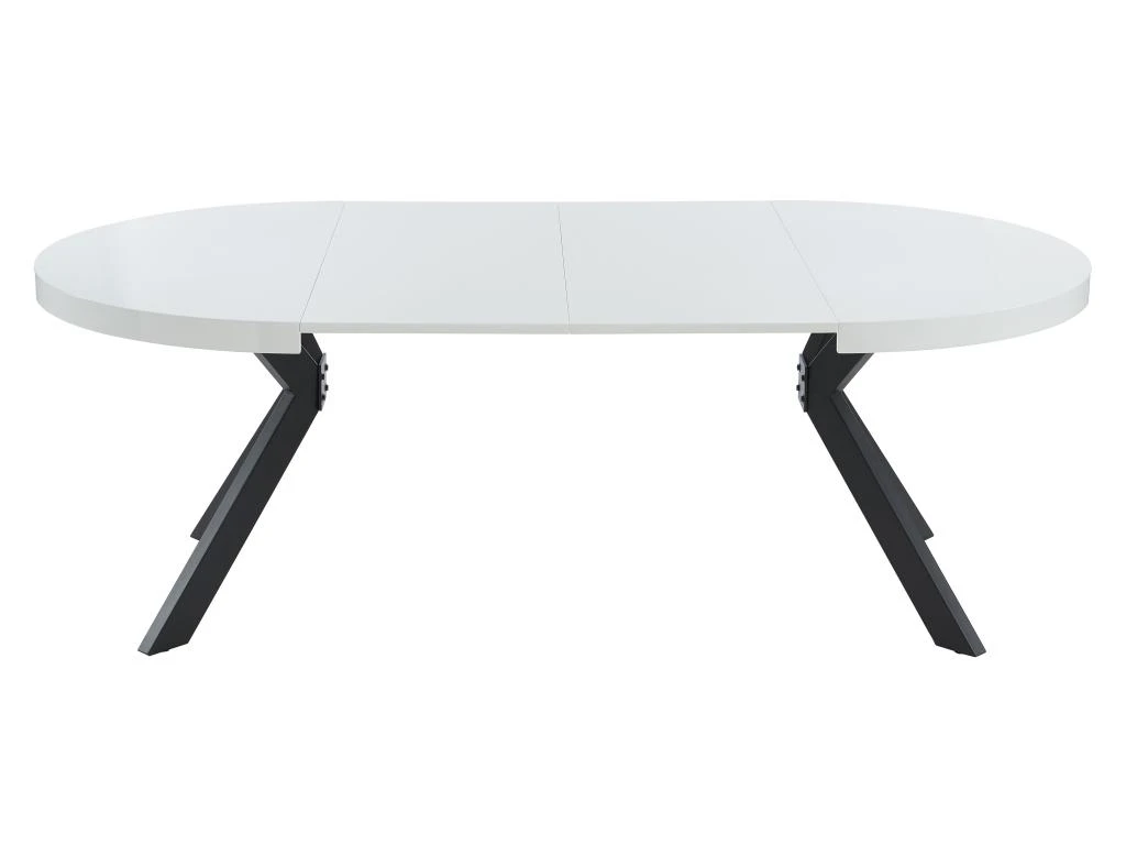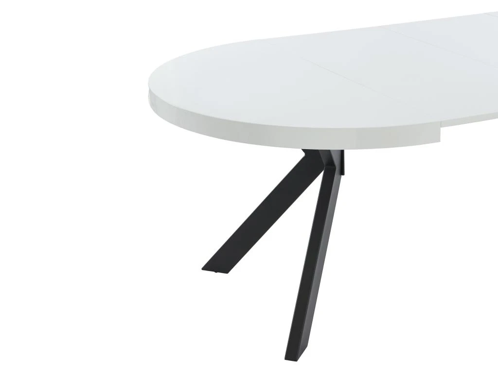 La table à manger KOMONI possède un plateau extensible pour 4 à 8 personnes en MDF coloris blanc laqué. Il est soutenu par des pieds en acier au style élégant. La forme arrondie de cette table s’adaptera à tous les intérieurs et apportera de la douceur à votre séjour.