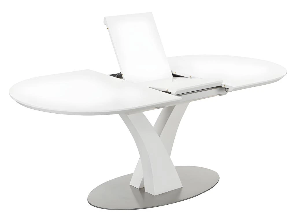 La table à manger TALARA est dotée d’un plateau ovale extensible en MDF laqué et mélaminé. Ce plateau, spacieux et résistant est maintenu par un pied central.
