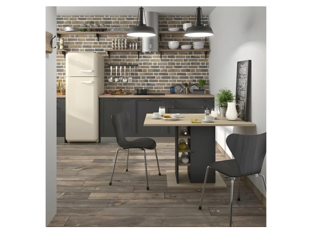 Table Extensible Portefeuille 90×90/180 Cm Karamay Libra Chêne Nature Cadre Anthracite