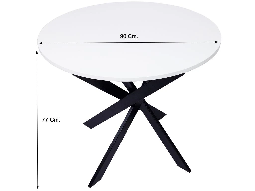 TABLE À MANGER FIXE: il s’agit d’un meuble qui ne peut manquer dans aucune maison. Son design unique s’adapte à tous les intérieurs et apporte une touche de modernité qui se marie parfaitement avec le style décoratif. Avec un diamètre de 90 cm, elle vous offre la possibilité d’accueillir jusqu’à 4 convives.