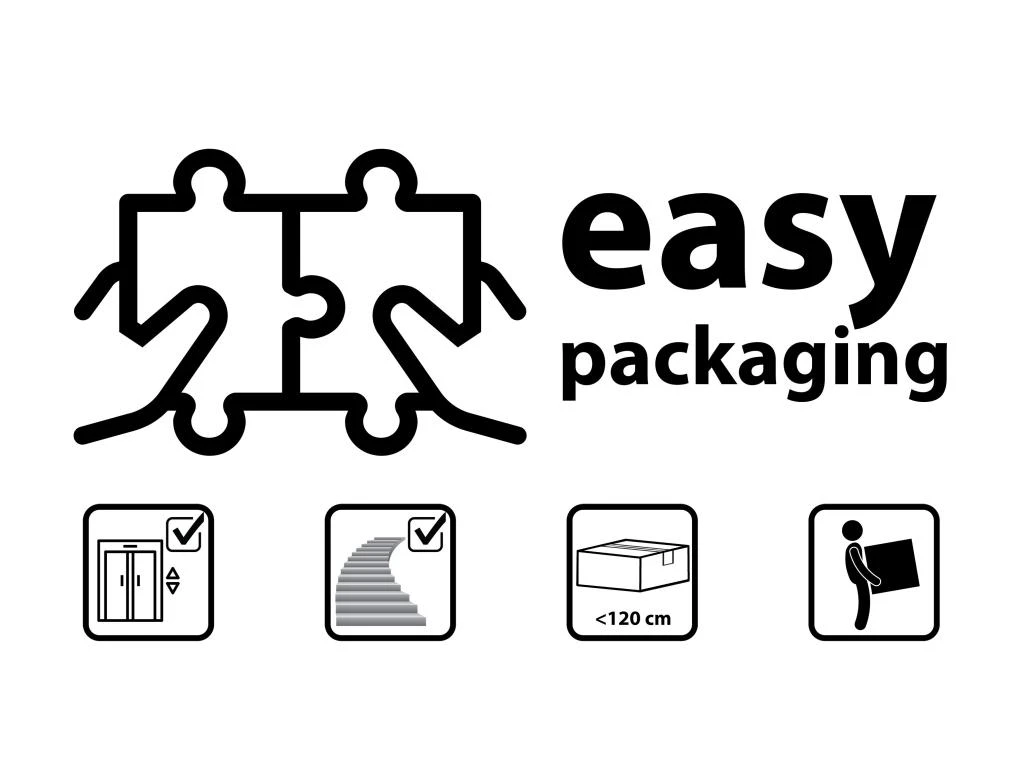 Meuble en kit facile à monter soi-même, composé de 2 colis qui comprennent tout le matériel, les pièces et les instructions pour un assemblage parfait.