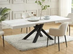 Table Ă Manger Extensible 6 Ă 10 Couverts En MDF Et MĂ©tal – Effet Marbre Blanc Et Noir – CATONAV