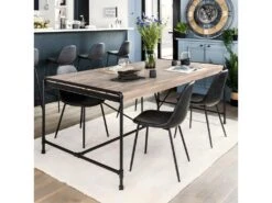 Table à Manger, 6 Personnes, 140, Robust, Structure Stable, Pieds Solides, Chêne Et Noir
