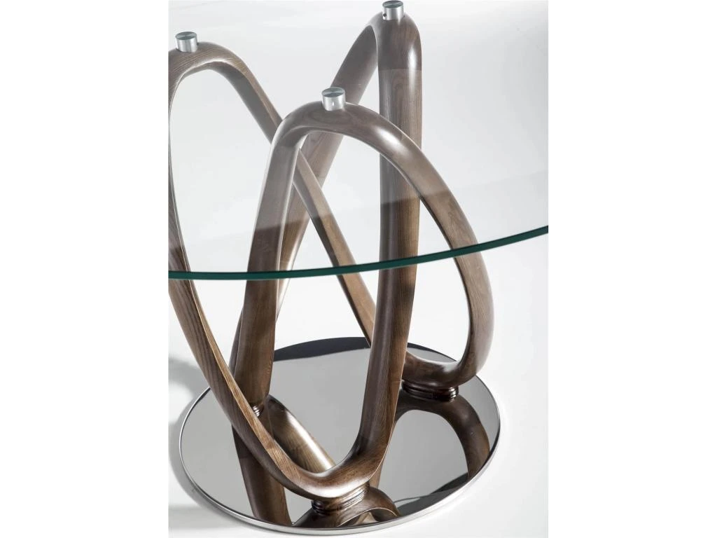 Matière : couvercle : verre transparent de 12 mm avec procédé de trempe thermique à 635 degrés et bords polis, jambe : bois de frêne massif, base : acier massif chromé 22 microns ,