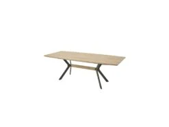 Le plateau épais propose des bords irréguliers et un revêtement bois naturel au veinage plus vrai que nature, fourni avec une allonge la capacité de réception passe alors de 8 à 12 places en un tour de main.