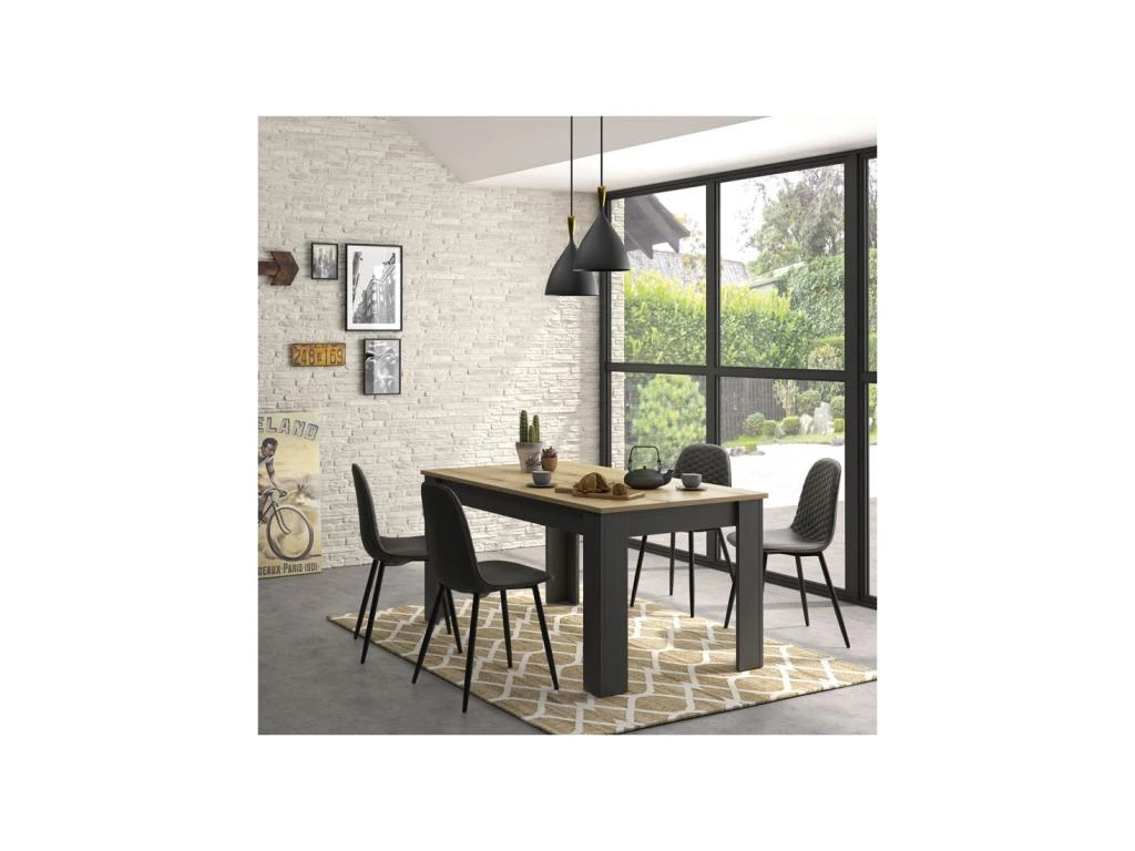 L’épais plateau au revêtement Chêne clair et au veinage plus vrai que nature est parfaitement proportionné au piétement large et stable, ce piétement revêtement Noir assure une stabilité exceptionnelle qui permet de recevoir jusqu’à 6 personnes.