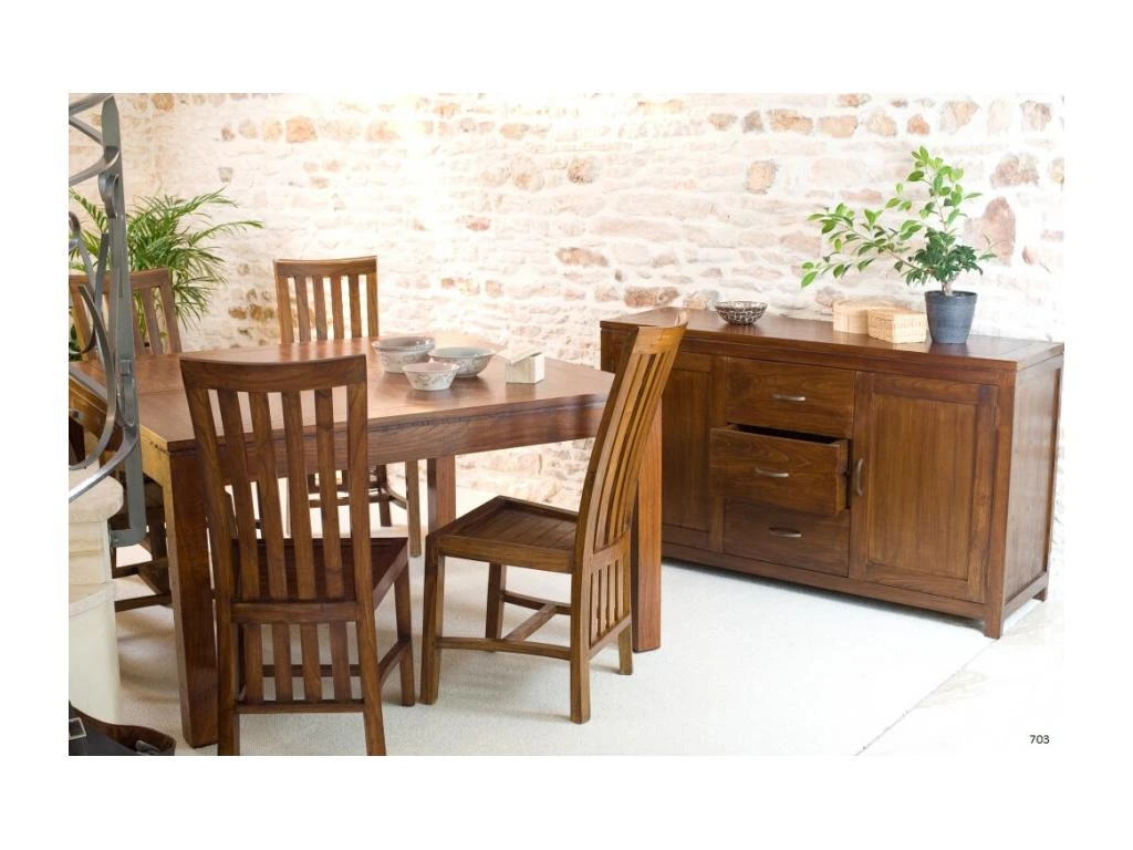 Sobre et élégante, cette table de repas promet de mettre en avant le veinage caractéristique du bois de mindi.