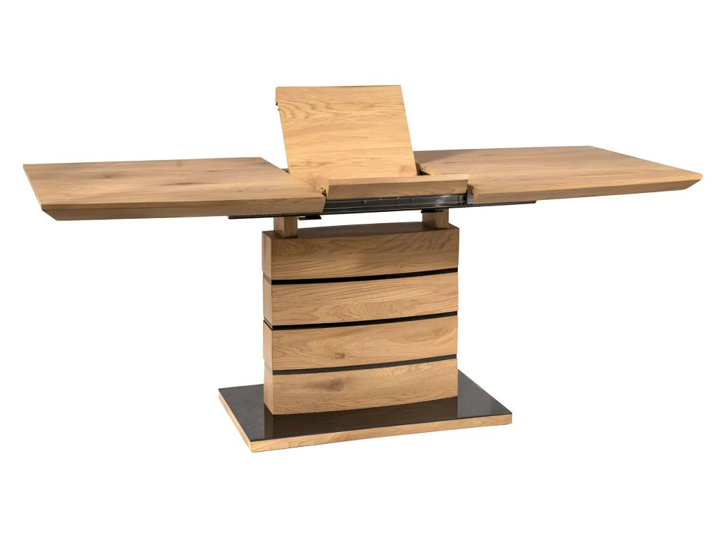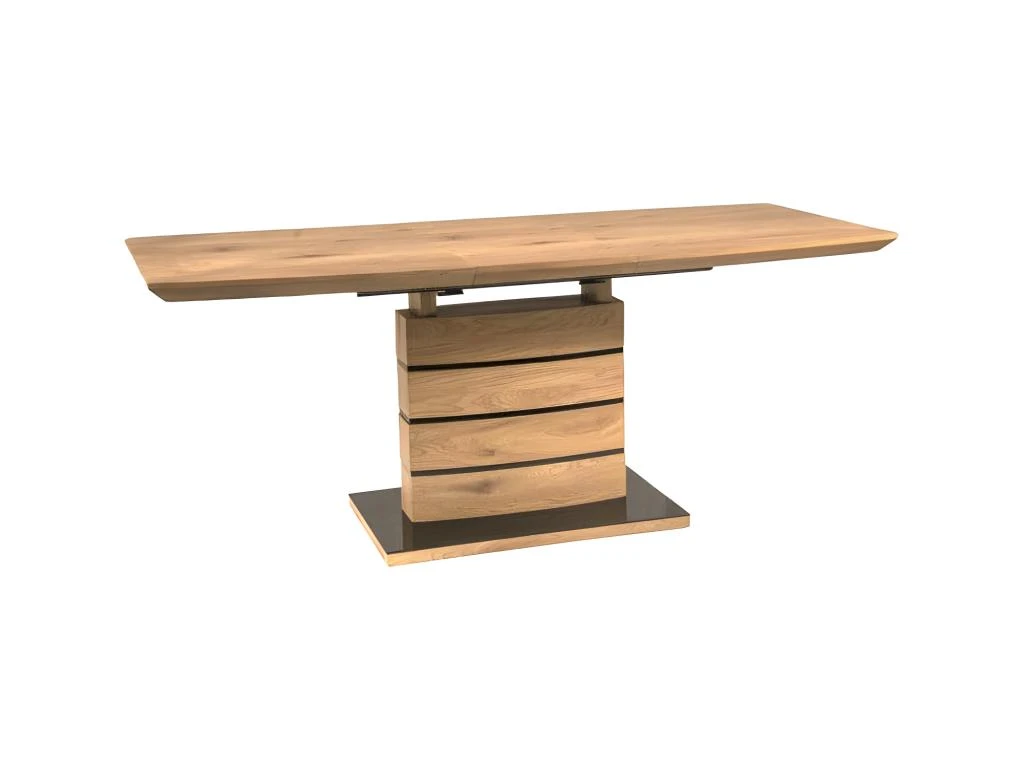 - RALLONGE : Système « papillon ». La rallonge est située entre les 2 plateaux qui se séparent au centre / Loquets en métal pour verrouiller la rallonge.