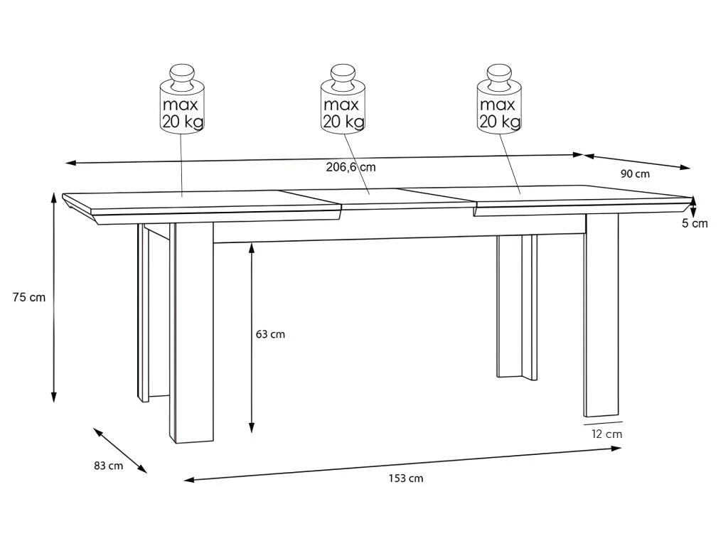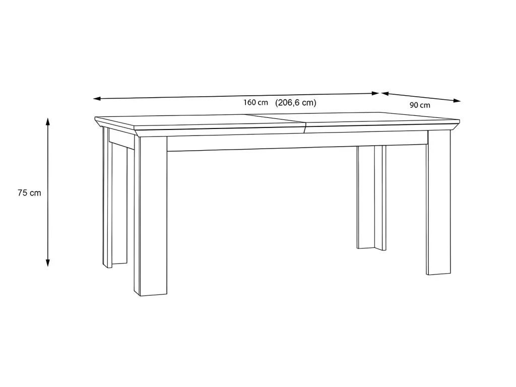 - DIMENSIONS APPROXIMATIVES : Longueur 160 cm (206,6 cm avec rallonge) x Hauteur 75 cm x Profondeur 90 cm.