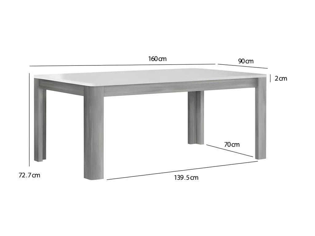 - FINITIONS : plateau décor blanc laqué et piétement décor chêne gris nordique