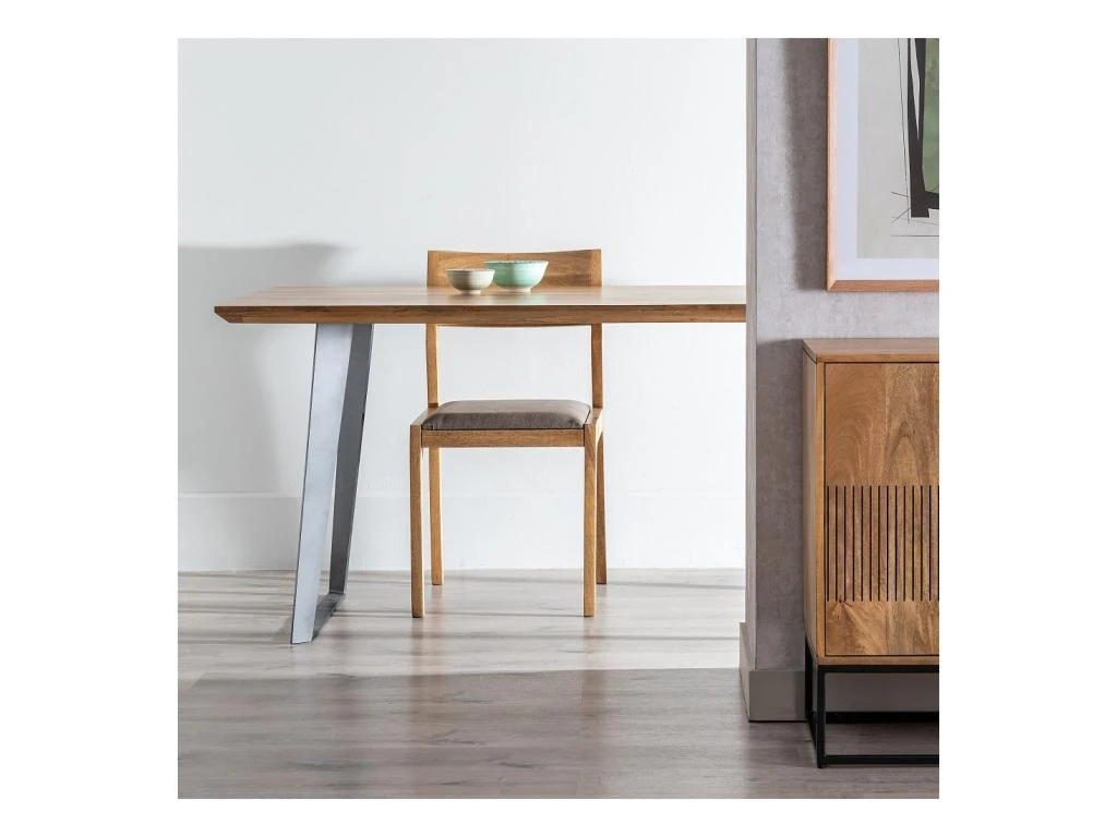 Solidement campé sur un piétement robuste et stable cette table de salle à manger permet de recevoir très confortablement 6 convives.