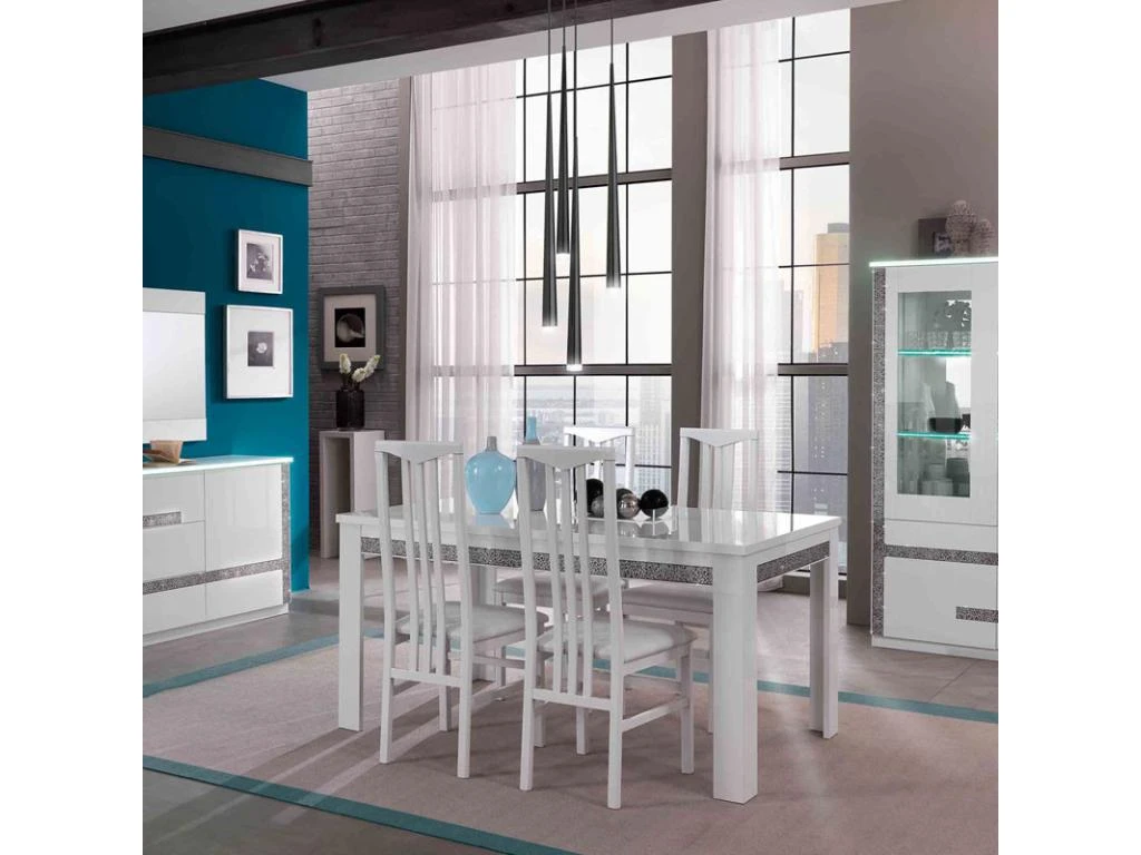 Table à Manger Extensible 2 à 12 Couverts En MDF Et Acier – Effet Marbre Blanc Et Doré – FIRELA