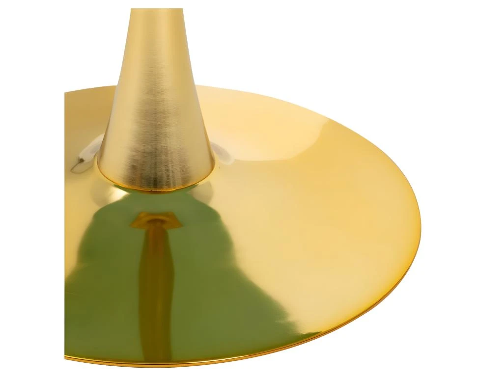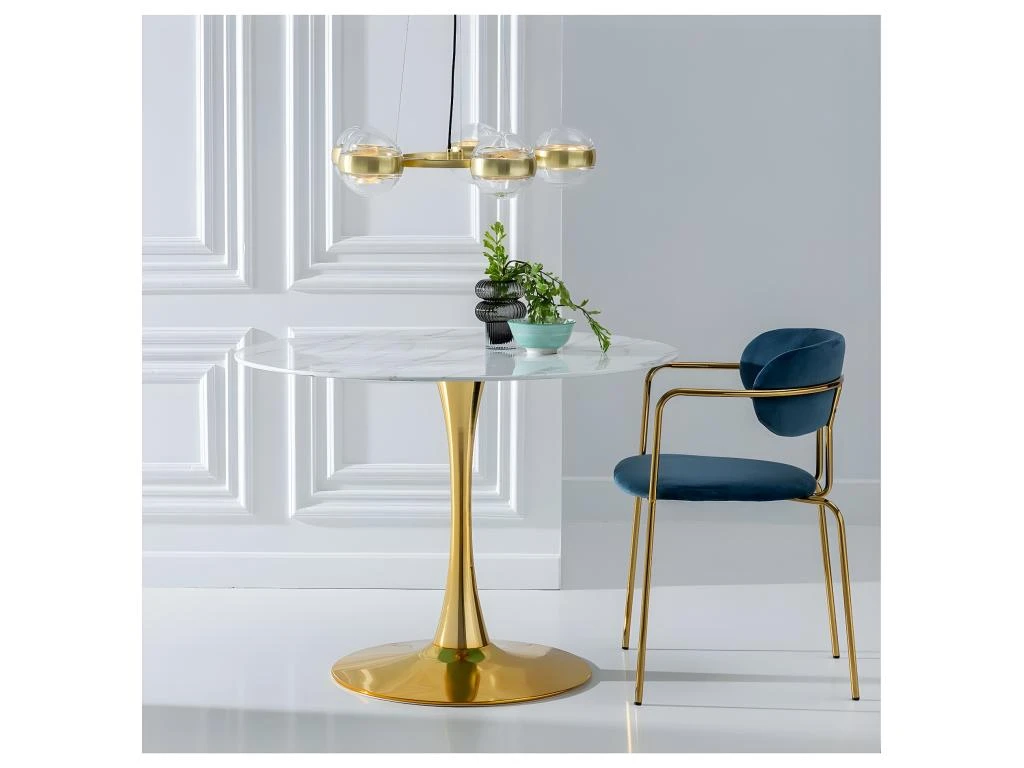 Boostez la déco de votre salle à manger avec cette table de repas ronde et son spectaculaire piétement central en acier inoxydable teinte Or.