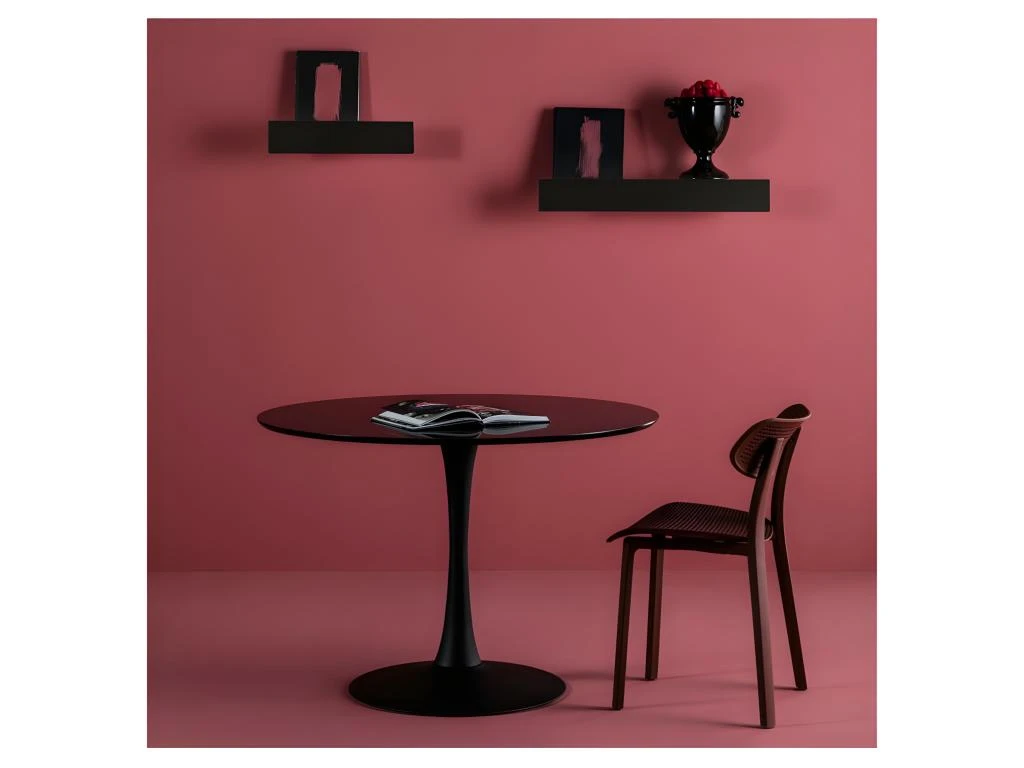 Très nettement inspirée d’un classique du design, cette table de repas ronde met en avant une ligne entrée dans les classique du mobilier d’architecte designer.