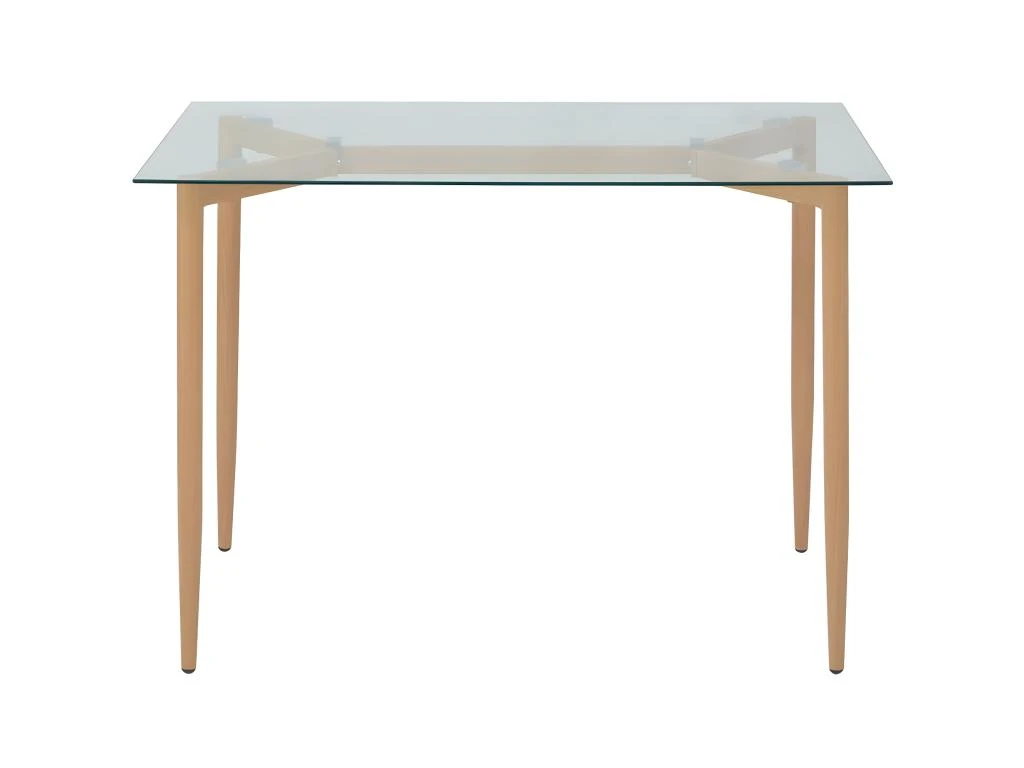 - Matériau : dessus en verre + pieds en métal avec impression en bois