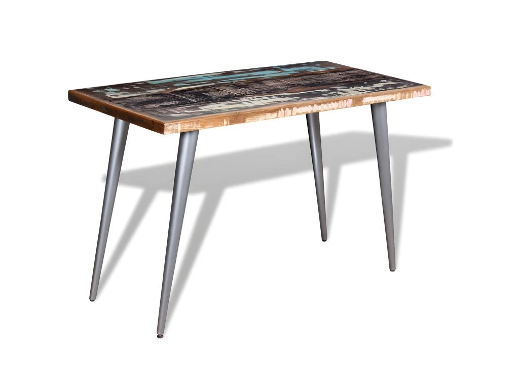 - Matériau : Table en bois massif de récupération + pieds en acier