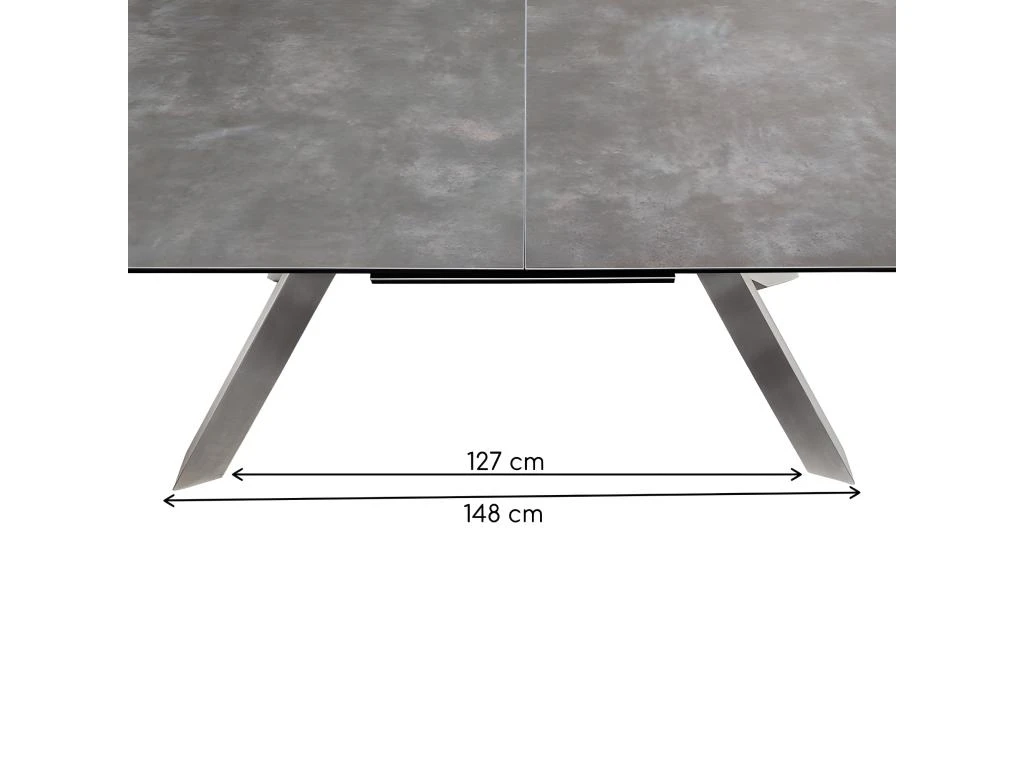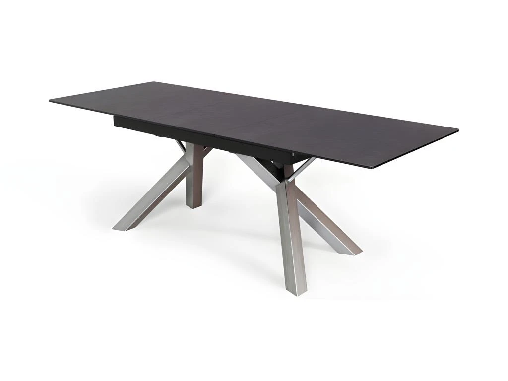 Magnifique table de salle à manger qui associe la céramique et l’acier, deux matériaux aux caractères durables, « propres », ultra résistants et nobles.