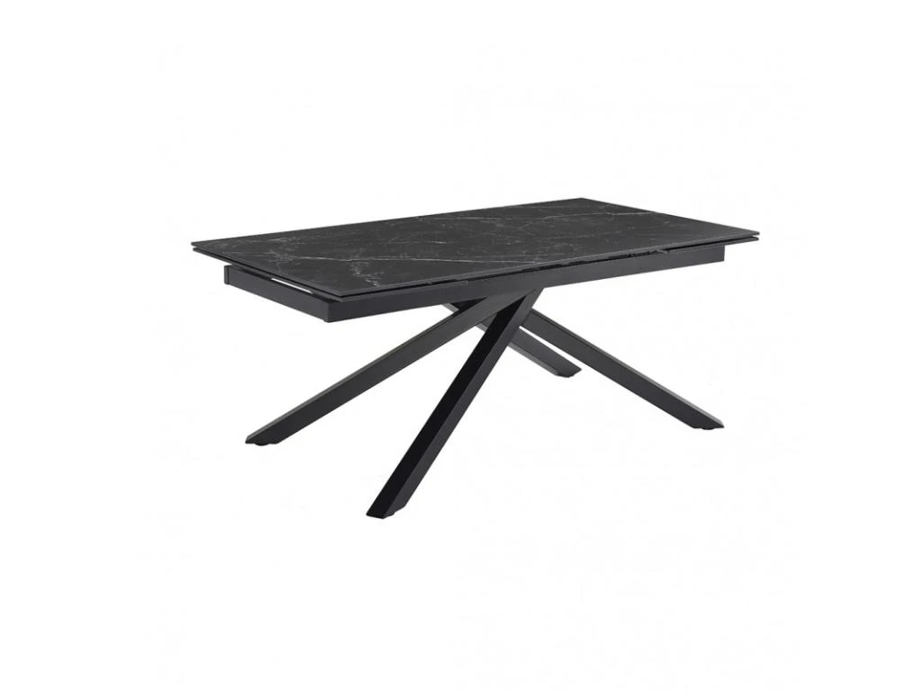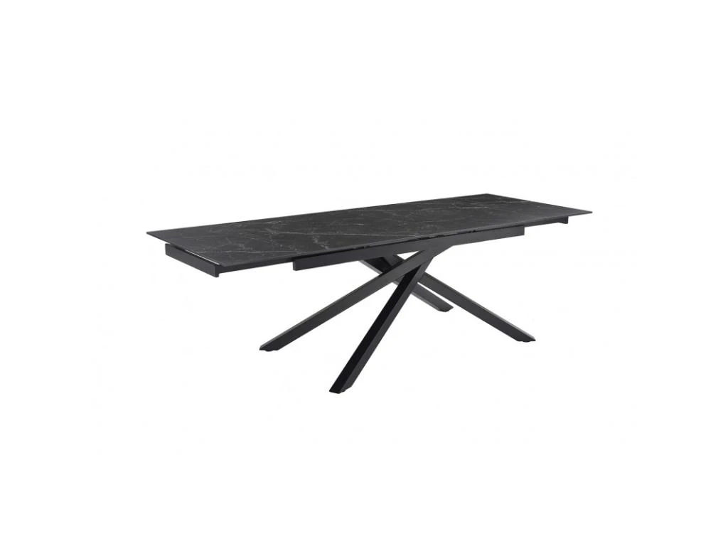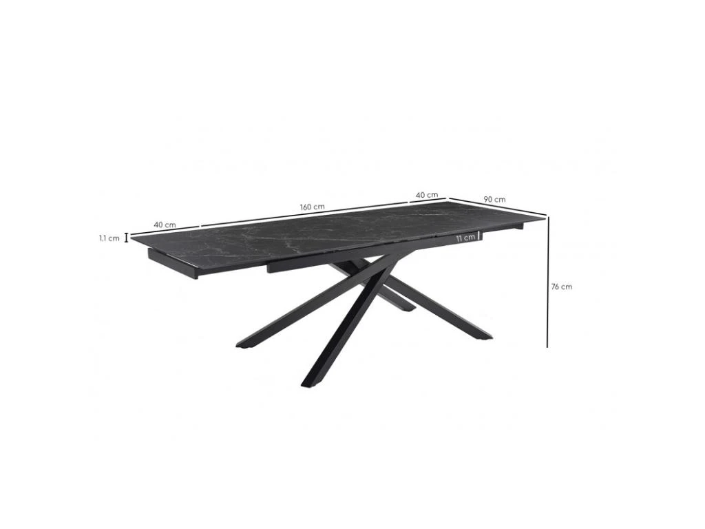 La table personnalisée adaptée à vos envies ! Son plateau en céramique pleine masse de 11mm noir marbré mat est original et robuste. Attablez jusqu’à 10 personnes grâce à ses 2 rallonges intégrées de 40 cm chacune, pratiques, et simple d’utilisation. Elle passe ainsi de 160 à 240 cm. Son plateau en céramique lui confère des qualités remarquables : résistance aux rayures, insensible aux taches diverses, et ne craint pas les différences de températures. Son piètement torsadé en métal noir vous assure stabilité, robustesse et originalité !