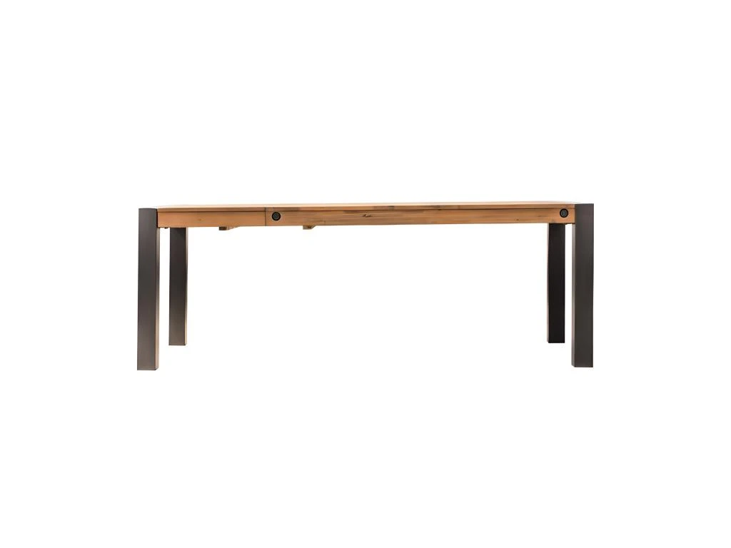 La table extensible avec allonge de 50 cm WORKSHOP trouvera sa place dans un appartement ou une maison contemporaine et moderne. Idéale pour une cuisine ou une salle à manger, elle vous charmera par sa structure faite en métal et en bois d’acacia. Plus qu’une simple table, elle deviendra un élément de décoration à part entière.