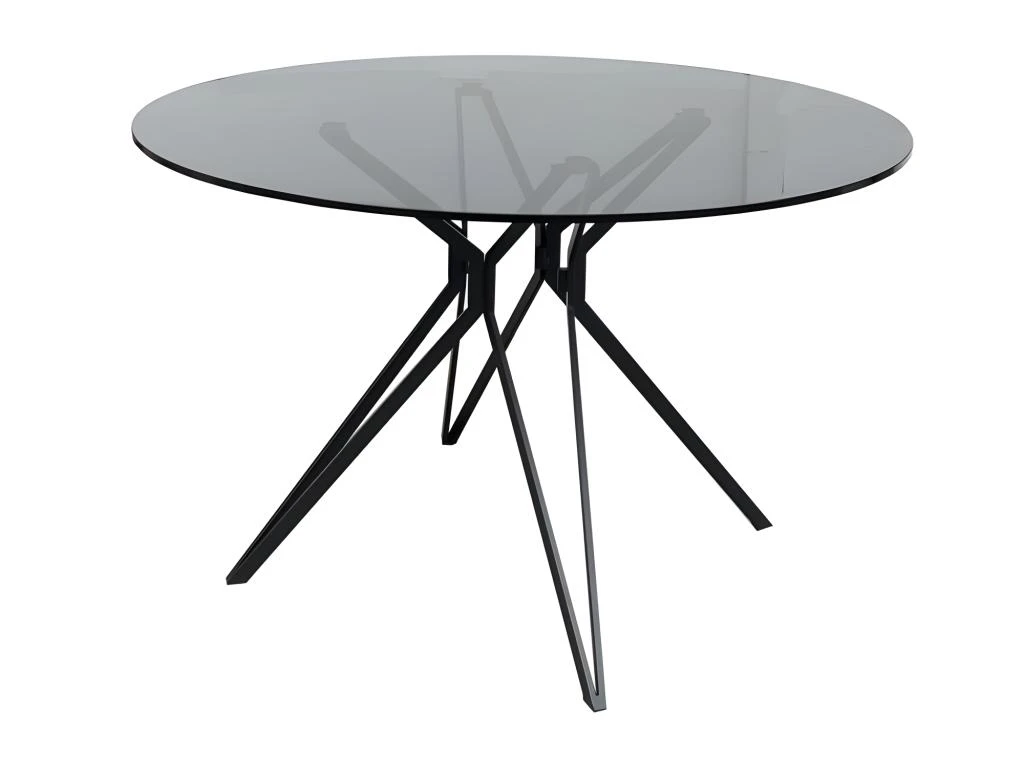 - Plateau rond en verre trempé fumé transparent épaisseur 1 cm. Plateau fixé au pied grace à 4 vis.