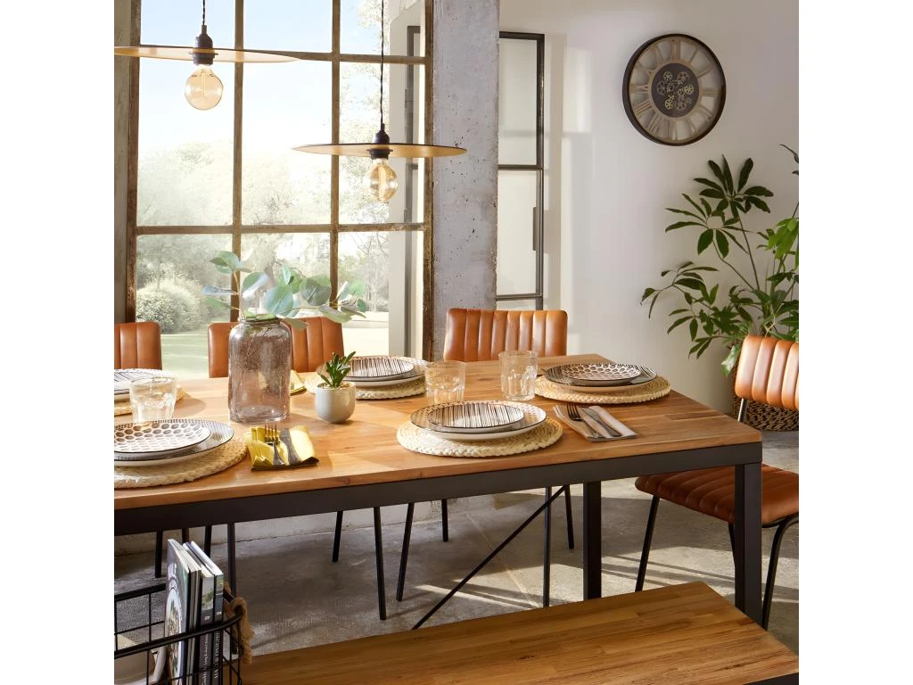 Table de salle à manger Edena de marque Atmosphera. Cette superbe table sera parfaite pour meubler tout type de salle à manger! Pieds de table en métal et plateau en bois. Hauteur – 90cm, Profondeur – 75cm, Largeur – 180cm, Poids – 36kg.