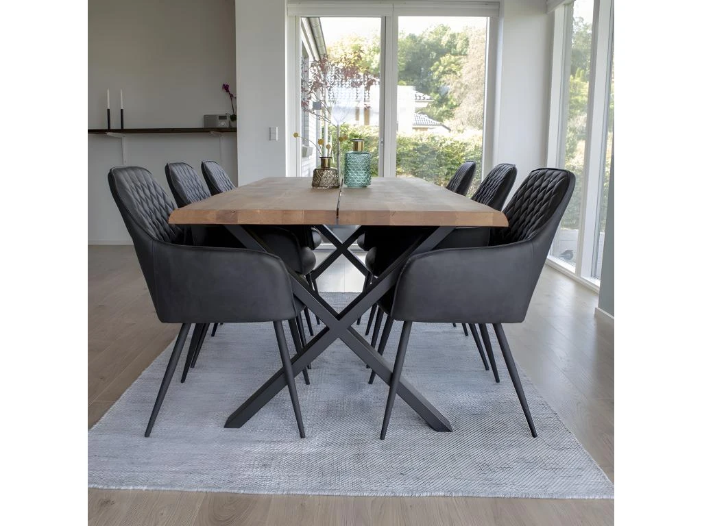 TENSO – Pack Table Allongeable Effet Bois + Fauteuils Velours Côtelé Konae 2x Noir + 2x Ocre