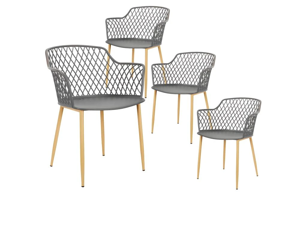 Lot de 4 Fauteuils Gris Pieds Effet Bois Verni de la gamme Tressie.