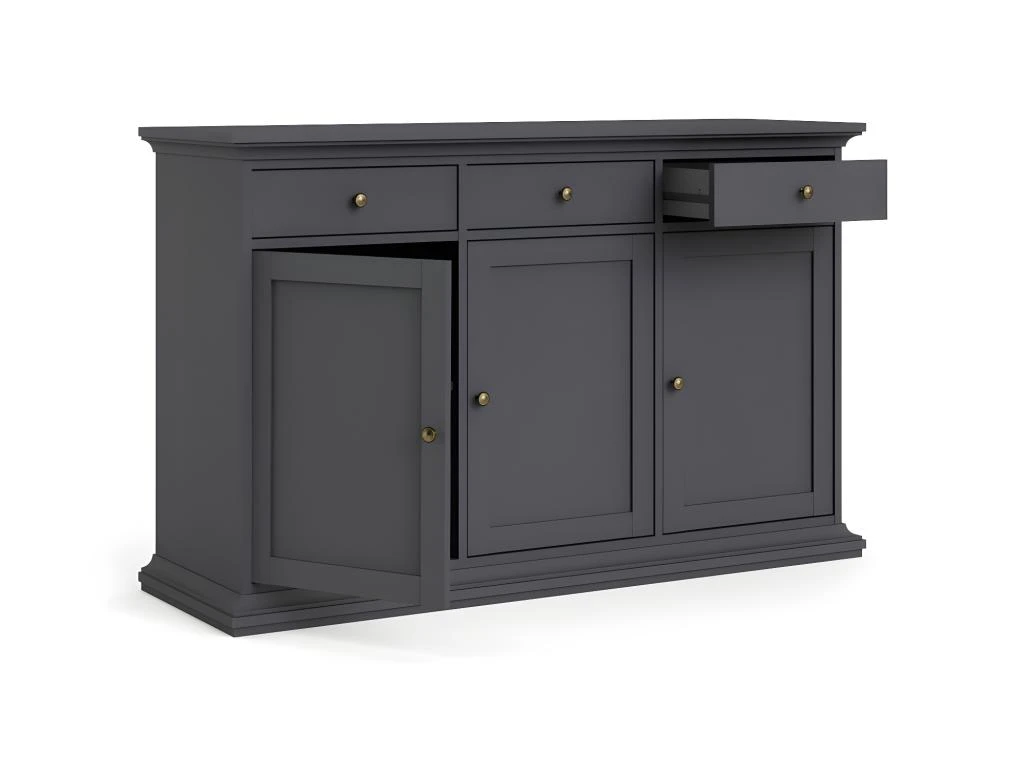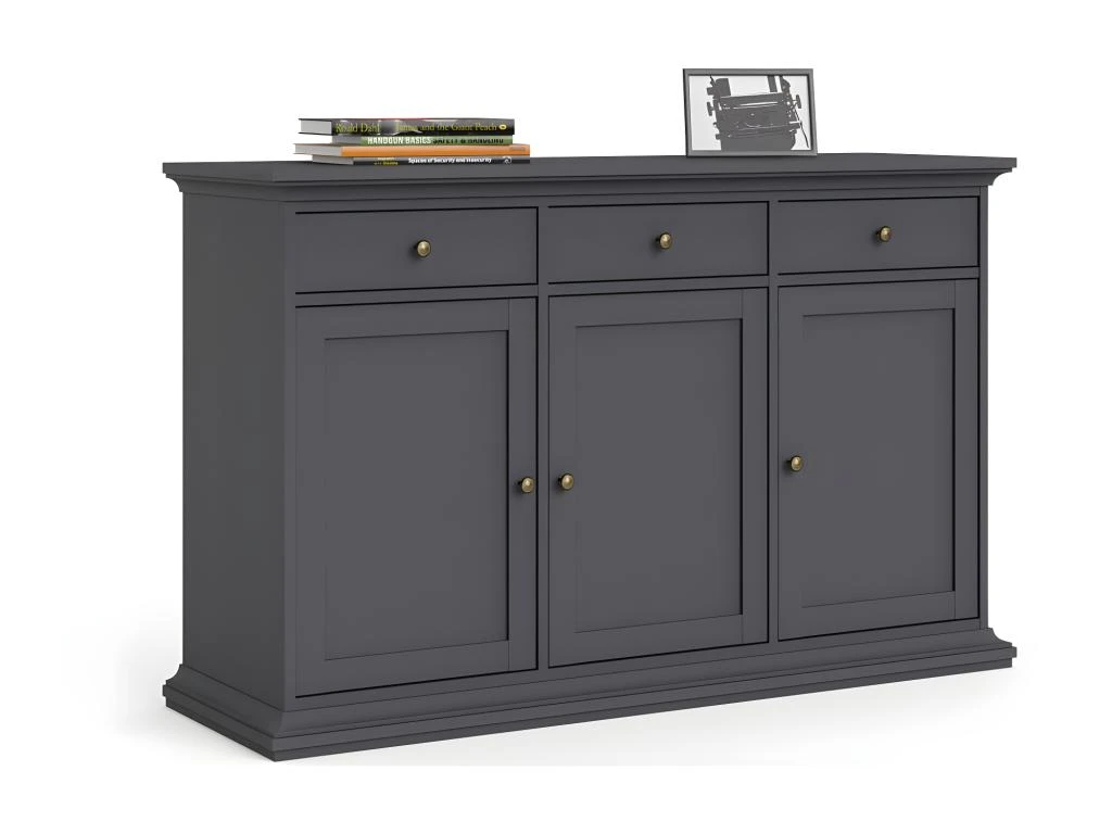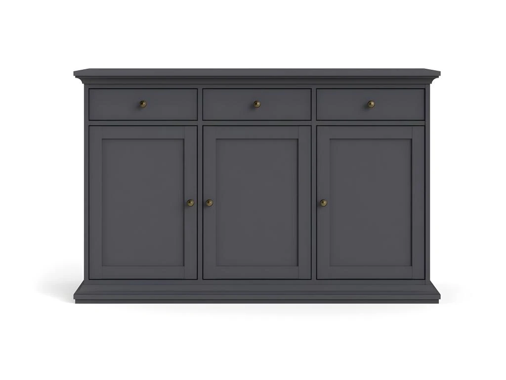 Venedig Buffet 3 portes et 3 tiroirs, gris mat. Obtenez des meubles de bonne qualité, confortables, conçus dans un design élégant et moderne. Nos meubles sont vendus à des prix vraiment très attractifs et compétitifs. Créez un intérieur qui vous ressemble, en créant un style qui vous est propre grâce à de nouveaux meubles. Combinez vos meubles avec d’autres éléments et accessoires pour créer une athmosphère chic et à la mode. Soyez toujours au goût du jour en matière d’habitat, et suivez les dernières tendances telles que présentées dans les revues et les magazines. Chez nous, vous trouverez des modèles de meubles et de décoration d’intérieur absolument uniques, chics et ultra confortables. Tous nos meubles offrent un design tendance.