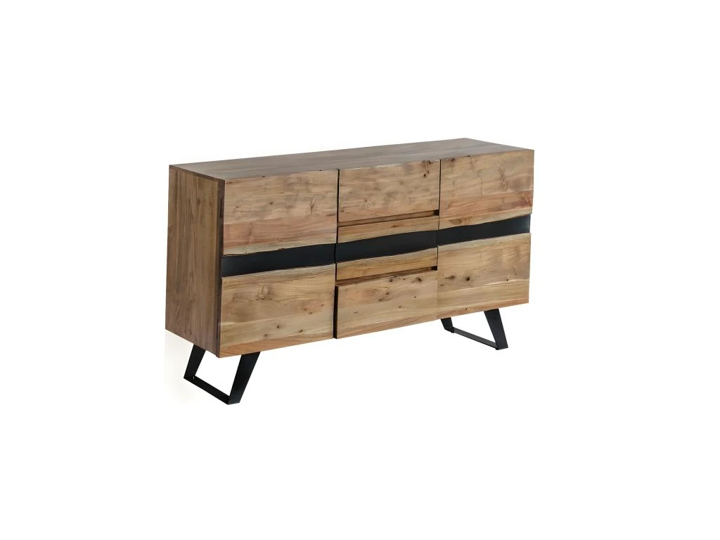 Buffet 2 Portes 3 Tiroirs en Acacia Massif et Métal Noir de la gamme Volska.