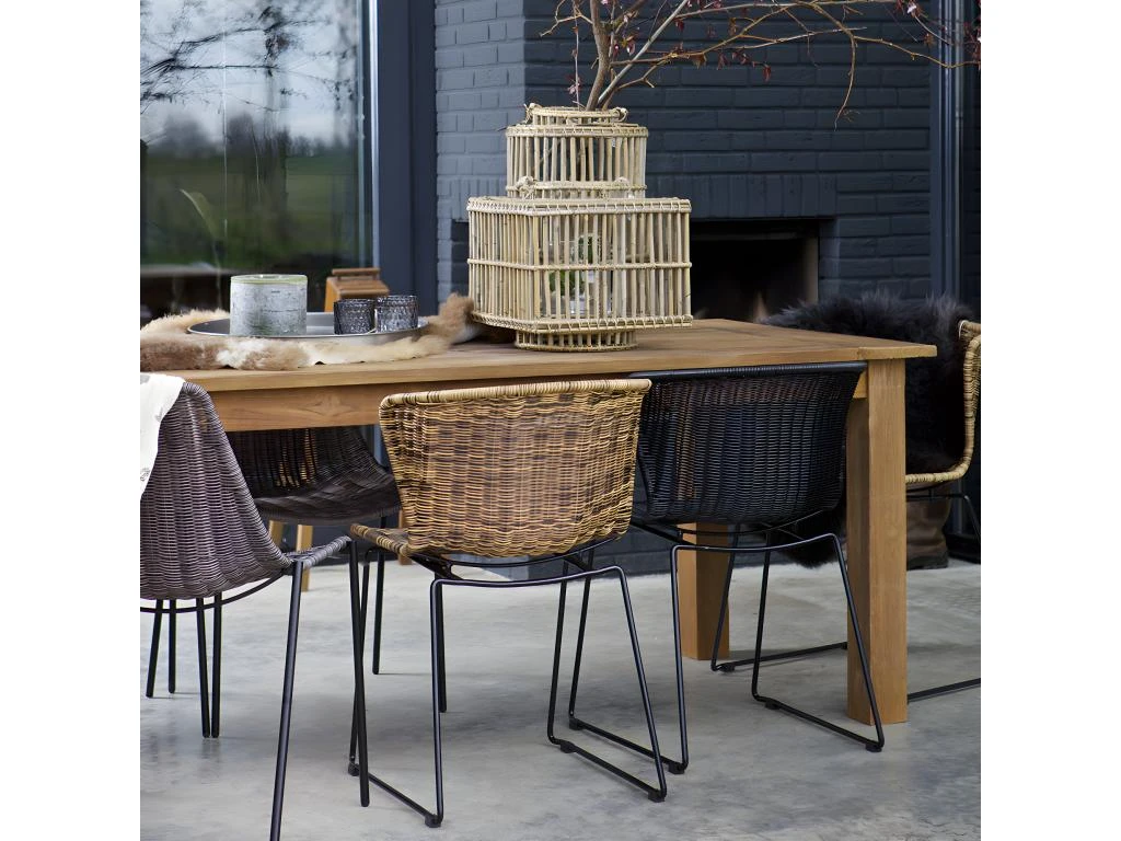 Le rotin plastique (P.E) est un matériau vraiment adapté à l’air du temps. Très robuste, il est simple à entretenir et résiste au temps et aux éléments. Cette chaise Wings fera donc sans dommage la navette entre le jardin, la terrasse et l’intérieur de la maison. Le piètement est en acier laqué époxy, un traitement qui lui aussi résiste aux intempéries & au temps. Bien sûr, mieux vaut les rentrer l’hiver pour qu’elles durent plus longtemps !